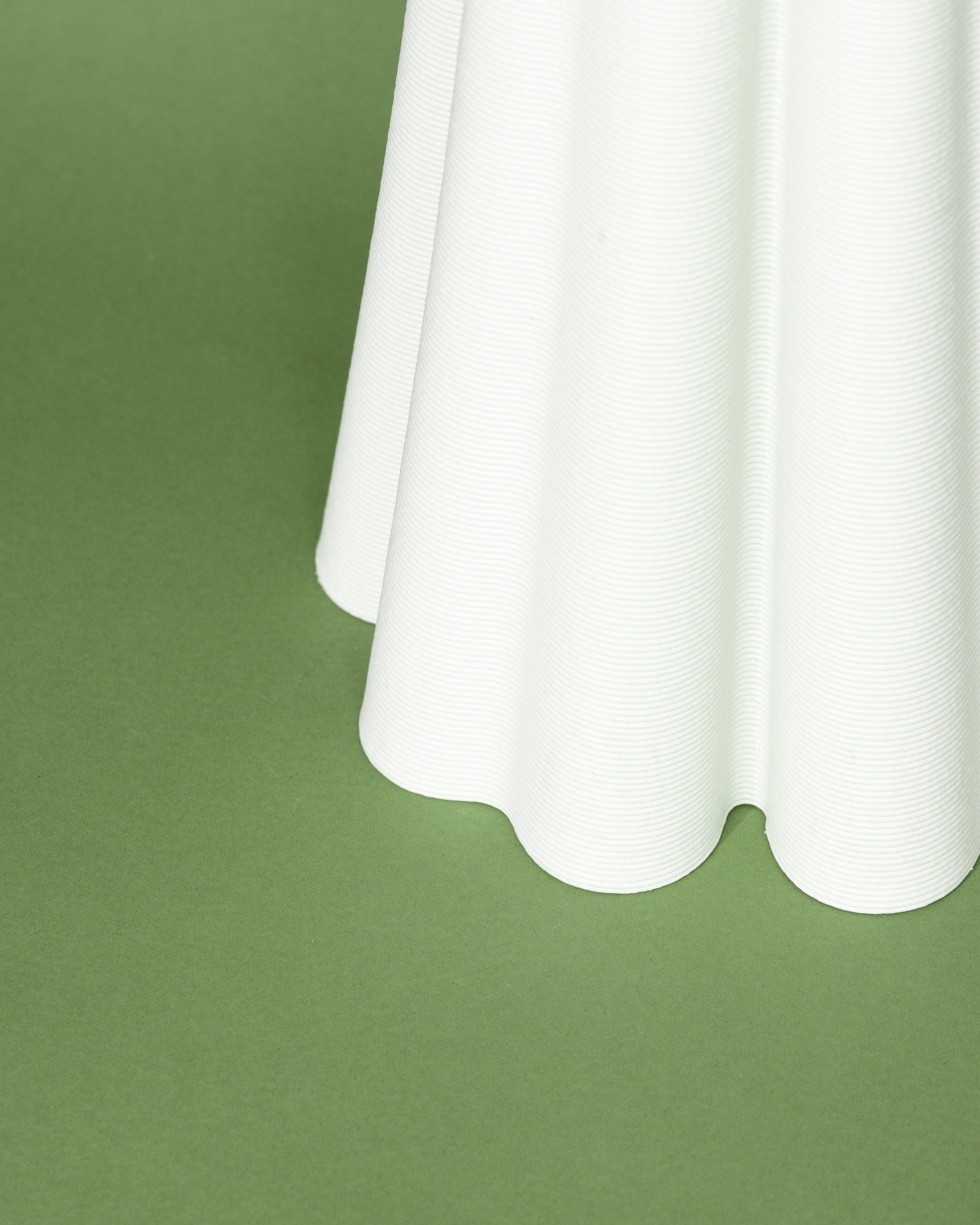 Inspired by traditional weaving techniques, this 3D-printed stool transforms the warmth of handcrafted textures into a modern, digitally fabricated form. Its intricate, bead-like surface mimics the rhythm of woven fibers, creating a tactile pattern that wraps seamlessly around the structure.